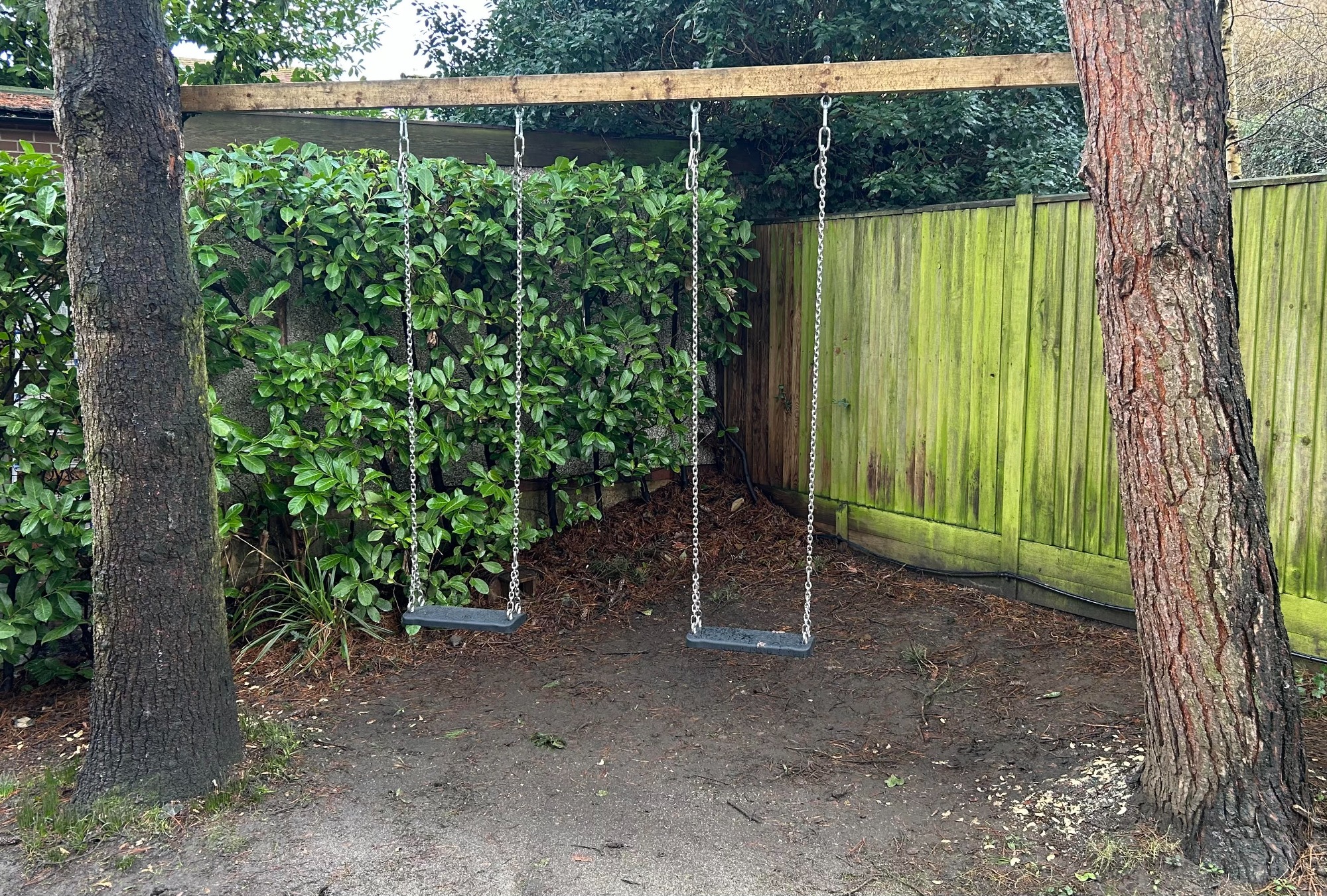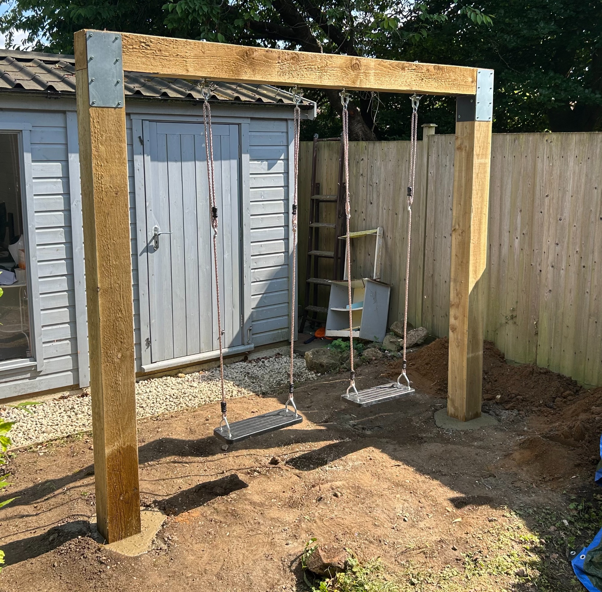 Swing beam fitted between two tree's and installed to ensure continued growth and health of the tree's.